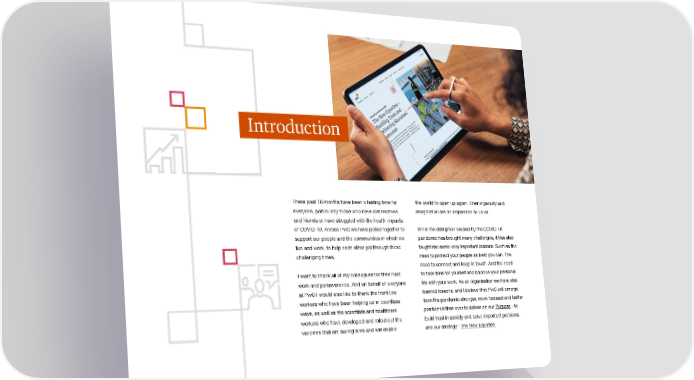 Introduction These past 18 months have been a testing time for the world to open up again. Their ingenuity and everyone, particularly those who have lost relatives imagination are an inspiration to us all. and friends or have struggled with the health impacts of COVID-19. Across PwC we have pulled together to While the disruption caused by the COVID-19 support our people and the communities in which we pandemic has brought many challenges, it has also live and work, to help each other get through these taught me some very important lessons. Such as the challenging times. need to protect your people as best you can. The need to connect and keep in touch. And the need I want to thank all of my colleagues for their hard to take time for yourself and balance your personal work and perseverance. And on behalf of everyone life with your work. As an organisation we have also at PwC I would also like to thank the front-line learned lessons, and I believe that PwC will emerge workers who have been helping us in countless from the pandemic stronger, more focused and better ways, as well as the scientists and healthcare positioned than ever to deliver on our Purpose - to workers who have developed and rolled out the build trust in society and solve important problems - vaccines that are saving lives and will enable and our strategy - The New Equation.