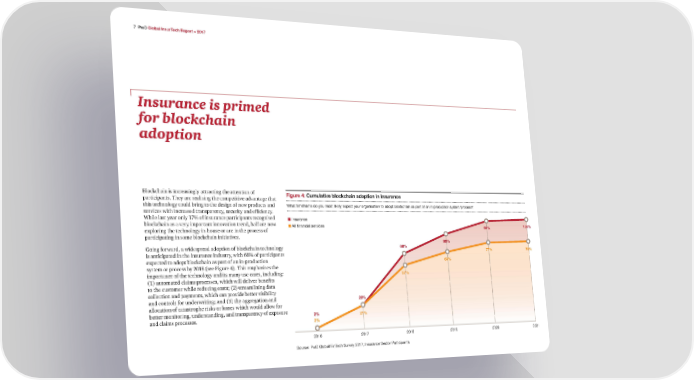 7 PwC Global InsurTech Report – 2017 Insurance is primed for blockchain adoption Blockchain is increasingly attracting the attention of Figure 4 Cuulatie blocchain a‚option in insurance participants. They are realising the competitive advantage that this technology could bring to the design of new products and What timeframe do you most likely expect your organisation to adopt blockchain as part of an in production systemžprocess? services with increased transparency, security and efficiency. While last year only 17% of insurance participants recognised n ˆnsurance blockchain as a very important innovation trend, half are now n ›ll financial services 100 exploring the technology in-house or are in the process of …… participating in some blockchain initiatives. Going forward, a widespread adoption of blockchain technology is anticipated in the insurance industry, with 68% of participants 77 7… expected to adopt blockchain as part of an in-production … system or process by 2018 (see Figure 4). This emphasises the importance of the technology and its many use cases, including: €7 (1) automated claims processes, which will deliver benefits to the customer while reducing costs; (2) streamlining data collection and payments, which can provide better visibility and controls for underwriting; and (3) the aggregation and 20 allocation of catastrophe risks or losses which would allow for better monitoring, understanding, and transparency of exposure 2 21 and claims processes. 2 † Ÿ €ource‚ ƒw„ …lobal FinTech €urvey †‡ ˆnsurance €ector ƒarticipants