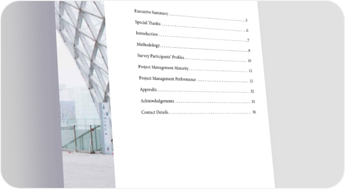 Contents Executive Summary . . . . . . . . . . . . . . . . . . . . . . . . . . . . . . . . . . . . . . . . . . . . .3 Special Thanks . . . . . . . . . . . . . . . . . . . . . . . . . . . . . . . . . . . . . . . . . . . . . . . . .6 Introduction . . . . . . . . . . . . . . . . . . . . . . . . . . . . . . . . . . . . . . . . . . . . . . . . . . .7 Methodology . . . . . . . . . . . . . . . . . . . . . . . . . . . . . . . . . . . . . . . . . . . . . . . . . . .9 Survey Participants’ Profiles . . . . . . . . . . . . . . . . . . . . . . . . . . . . . . . . . . . . 10 Project Management Maturity . . . . . . . . . . . . . . . . . . . . . . . . . . . . . . . . . . 12 Project Management Performance . . . . . . . . . . . . . . . . . . . . . . . . . . . . . . 15 Appendix . . . . . . . . . . . . . . . . . . . . . . . . . . . . . . . . . . . . . . . . . . . . . . . . . . . . 32 Acknowledgements . . . . . . . . . . . . . . . . . . . . . . . . . . . . . . . . . . . . . . . . . . . 35 Contact Details . . . . . . . . . . . . . . . . . . . . . . . . . . . . . . . . . . . . . . . . . . . . . . . 36 Insights and trends: Current Portfolio, Programme and Project Management Practices 1