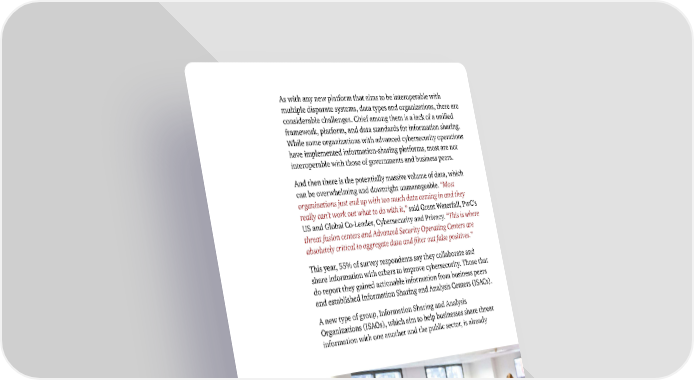 As with any new platform that aims to be interoperable with multiple disparate systems, data types and organizations, there are considerable challenges. Chief among them is a lack of a unified framework, platform, and data standards for information sharing. While some organizations with advanced cybersecurity operations have implemented information-sharing platforms, most are not interoperable with those of governments and business peers. And then there is the potentially massive volume of data, which can be overwhelming and downright unmanageable. “Most organizations just end up with too much data coming in and they really can’t work out what to do with it,” said Grant Waterfall, PwC’s US and Global Co-Leader, Cybersecurity and Privacy. “This is where threat fusion centers and Advanced Security Operating Centers are absolutely critical to aggregate data and filter out false positives.” This year, 55% of survey respondents say they collaborate and share information with others to improve cybersecurity. Those that do report they gained actionable information from business peers and established Information Sharing and Analysis Centers (ISACs). A new type of group, Information Sharing and Analysis Organizations (ISAOs), which aim to help businesses share threat information with one another and the public sector, is already 17 Key findings from The Global State of Information Security® Survey 2017 © 2016 PwC