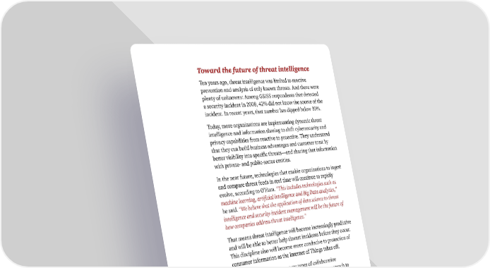 Toward the future of threat intelligence Ten years ago, threat intelligence was limited to reactive prevention and analysis of only known threats. And there were plenty of unknowns: Among GSISS respondents that detected a security incident in 2008, 42% did not know the source of the incident. In recent years, that number has dipped below 10%. Today, more organizations are implementing dynamic threat intelligence and information sharing to shift cybersecurity and privacy capabilities from reactive to proactive. They understand that they can build business advantages and customer trust by better visibility into specific threats—and sharing that information with private- and public-sector entities. In the near future, technologies that enable organizations to ingest and compare threat feeds in real time will continue to rapidly evolve, according to O’Hara. “This includes technologies such as machine learning, artificial intelligence and Big Data analytics,” he said. “We believe that the application of data science to threat intelligence and security-incident management will be the future of how companies address threat intelligence .” That means threat intelligence will become increasingly predictive and will be able to better help thwart incidents before they occur. This discipline also will become more conducive to protection of consumer information as the Internet of Things takes off. As for information sharing, new types of collaborative organizations will likely enable a more inclusive approach to distributing cyberthreat intelligence and deliver intelligence tailored to individual members. Access to actionable information can ultimately help enable continuous security improvements that benefit businesses, governments and individual users alike. 23 Key findings from The Global State of Information Security® Survey 2017 © 2016 PwC